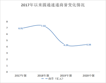 2017年,上市公司收购圆通速递国际(原先达国际控股有限公司)控股权,当期年度报告中记商誉账面价值6.91亿元,2018年商誉账面价值为7.32亿元,均未做商誉减值准备。2019年通过资产减值测试,结果显示包含商誉的资产组可回收金额值低于其账面价值,差额计提商誉减值损失金额 3.42 亿元,该项减值计入公司 2019 年度损益。2020中报显示其商誉维持在4.26亿元,说明受资产变更的影响,2019年圆通快递产生大量的商誉减值损失。