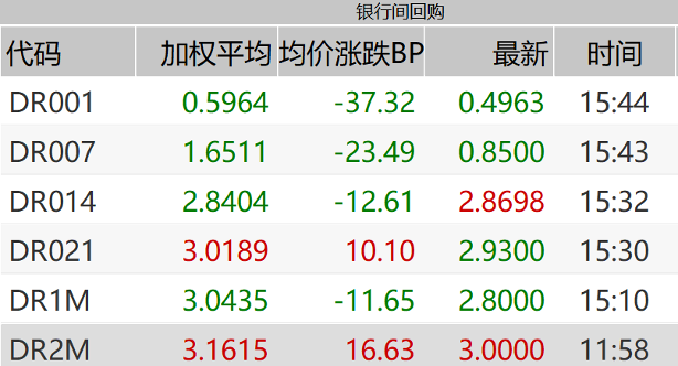 截至中证君发稿,银行间质押式回购利率也跌多涨少。