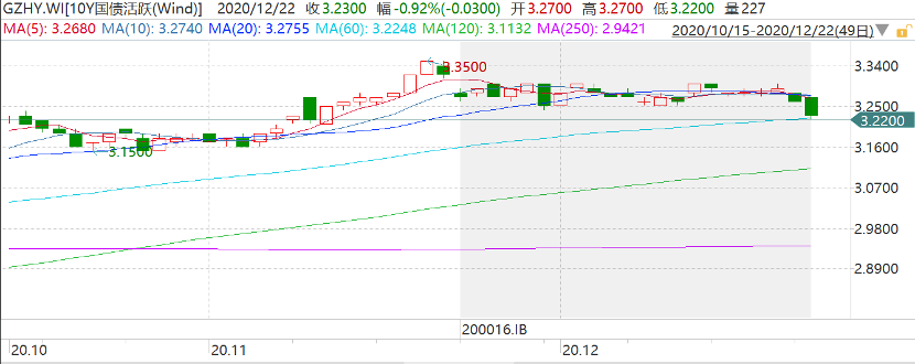 值得注意的是,央行呵护跨年资金面意图明显,再加上12月15日超额3500亿元续做当月MLF,债市流动性及利率走势预期均得到改善,此前走势低迷的国债期货连续三天收涨,银行间现券收益率也明显下行。
