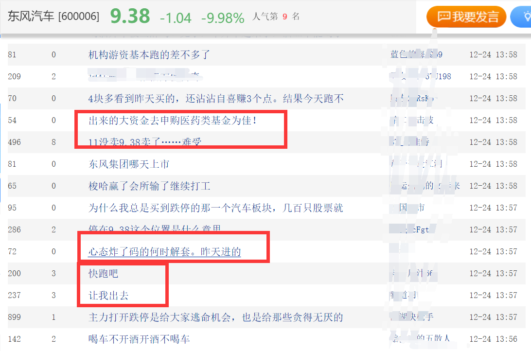 12月24日,此前近6个交易日录得5个涨停板的东风汽车(600006,SH)今日低开4%后,仅2分钟就闪崩跌停,成交16.47亿元,最新总市值187亿元。截至收盘,该股跌停板封单高达26.47万手,约2.35亿元。值得一提的是,东风汽车前一个交易日盘中暴拉8.6%,成交35.6亿元,这意味着昨日杀进去的20亿元资金被套了。