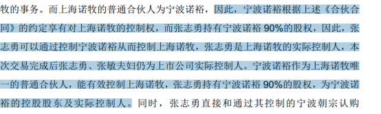 值得一提的是,据相关公告披露,上市公司交易的两个对手方上海诺牧和宁波诺裕均为上市公司实控人张志勇所控制的公司。