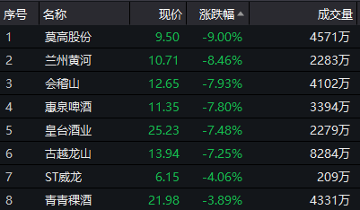 金种子酒也从跌停板快速上涨近7%,截至收盘仍上涨超4%;皇台酒业(维权)、古越龙山、莫高股份、青青稞酒等也纷纷打开跌停板。