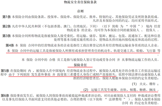 上图,就是某款物流安全责任的保险条款,从小编的角度看,保险责任好像就有点雷同机动车三者险?