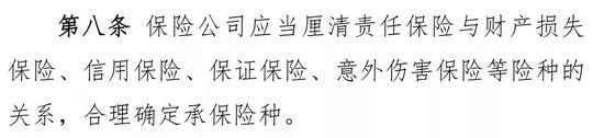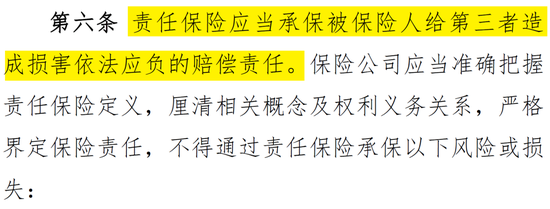 因此,此次新规,监管明确指出要险企厘清责任险与其他险种的关系。