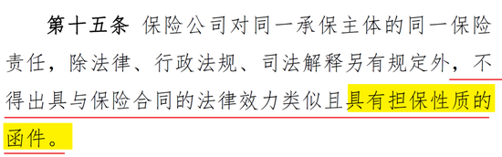 同时,更重要的是,除另有规定的情况外,险企也不得出具具有担保性质的函件!
