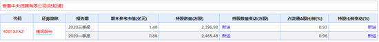 但同时,香港中央结算有限公司(陆股通)出现在了2020年三季度的新进股东名单内。