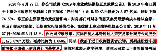 对此,游族网络投资者向深交所投诉,“质疑控股股东提前获知业绩修正信息进行内幕交易”。