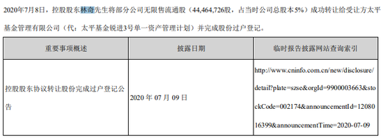 林奇这笔股权的接盘方为太平基金管理有限公司(下称“太平基金”)旗下“太平基金锐进3号单一资产管理计划”(下称“太平锐进”)。