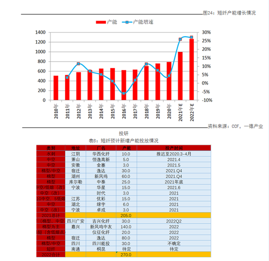 产能增长方面,近几年短纤产能扩张缓慢,明显落后于长丝。但是2021年后短纤产能扩张步伐加快,不过需要注意的是,2021年短纤产能扩张集中在下半年,并且所扩装置中,可用于交割的棉型产能较少,基本集中在Q4,对于可交割品供应压力较小,同时一些装置是否能够准时投产存在一定的不确定性,实际产能增速并没有预计的那么高。