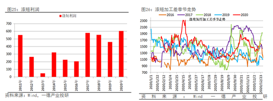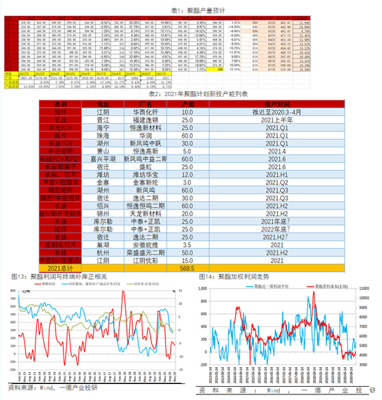 从终端纺织服装的存货来看,一般一年到一年半一个周期,最近的一波补库周期从19年年中开始,到2020年初进入去库周期,预计2021年上半年见底,随后或开启新一轮补库周期。而每一轮补库周期中我们也能看到聚酯利润的相应扩张。