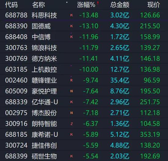 其实这种态势昨日已有苗头:科思科技20%跌停,报146.4元;德方纳米下跌13.11%,报165元。