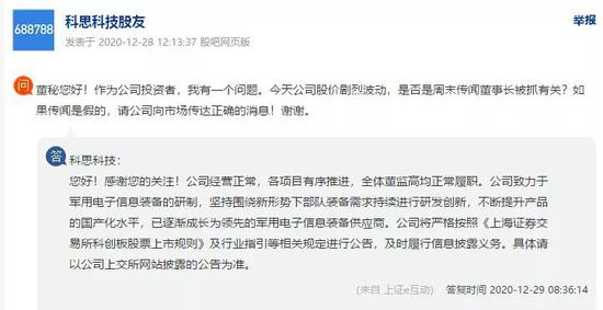 科思科技连续两日大跌,网友纷纷猜测,并在投资者互动平台上提问。