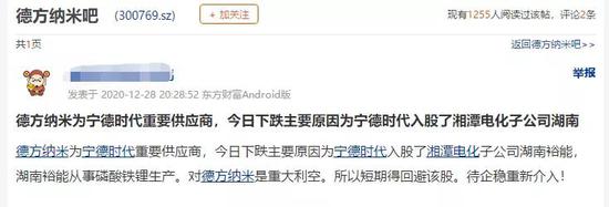 对于该股连续大跌,有网友猜测或与宁德时代入股湘潭电化子公司有关。