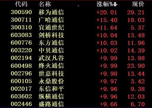 通信设备板块爆发 中兴通讯狂飙