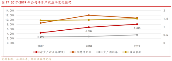 公司的财务数据显示,2017-2019年公司的净资产收益率持续明显改善,2019年达到8.09%,相比2018年提升1.31pct,按照杜邦分析法,ROE的改善主要得益于资产周转率的提升,公司资产运营效率不断提高。