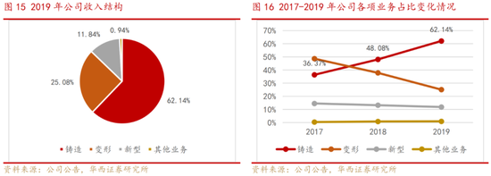 从业务结构来看,铸造高温合金业务占比显著提升,2019年达到62.14%,新型高温合金占比基本持平,变形高温合金占比下降明显,铸造高温合金、新型高温合金的毛利率较高,分别为33.32%、37.64%,大幅高于变形高温合金的19.92%,业务占比的变动情况表明,公司的产品结构得到持续优化。