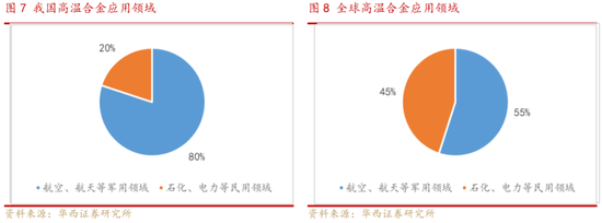 高温合金材料伴随航空发动机发展而来,同时又对航空发动机的性能具有重要影响,所谓“一代材料,一代动力”,可以说高温合金材料与航空发动机行业深度绑定,协同成长。一方面,在高性能航空发动机中,高温合金用量较大,占发动机总重量的40%-60%;另一方面,现阶段我国高温合金材料民用渗透较低,主要应用需求仍由航空发动机等领域拉动。