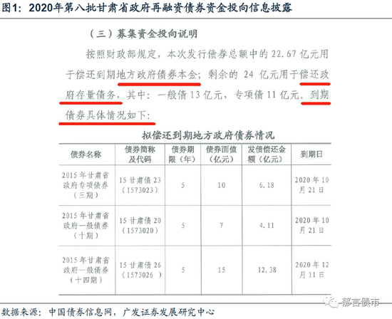 以甘肃省2020年12月28日发行的两只再融资债券为例,债券总额中拟用于偿还到期地方政府债券本金的22.67亿元,披露其用于偿还2015年发行的1只专项债和2只一般债。而用于偿还政府存量债务的24亿元,未披露偿还存量债务的明细。