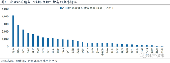 要回答这个问题,我们计算了各省“限额-余额”的差值。由于2020年新增债额度已基本用尽(除补充中小银行资本金的专项债额度之外),我们可以将“2019年限额-余额”粗略作为“2020年限额-余额”的数据。具体来看,中国政府网2020年12月8日发布新闻称,“新增债券中,一般债券发行9479亿元,完成全年计划的100%;专项债券发行35466亿元,完成全年计划(37500亿元)的94.6%”。剩余新增额度除了“用于支持化解地方中小银行风险新增专项债券额度”之外已用尽。
