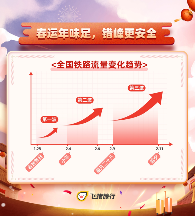 考虑到疫情防控、安全有序出行等因素,错峰回家成为今年春运的又一显著特征。高校学生客流预计在1月26日春运高峰到来前即可基本结束。打工人返乡预计在1月28日春运首日迎来第一波小高峰,2月4日即小年当天迎来第二波,腊月二十八(2月9日)到除夕达到回乡最高峰。打工人集中的城市如武汉、广州、上海、北京、深圳等主要火车站压力尤其明显。
