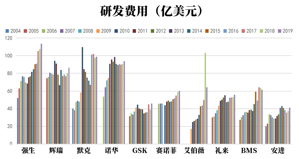 一款新药需要大量的资本和研发人员投入,目前跨国药企1年的研发费用数十亿到上百亿美元,占收入的比例普遍在15%左右。