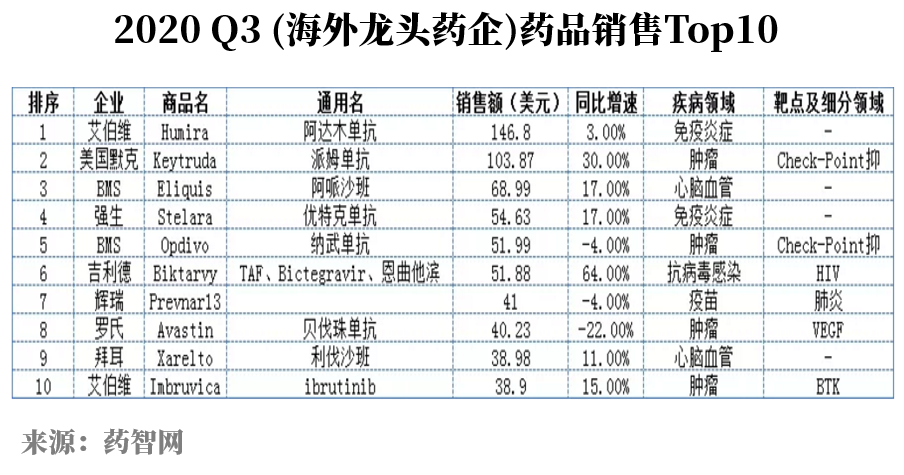 而大量研发投入的产出,则是一个个20年专利(包括临床和商业化阶段)的药品,其中许多药品随着临床布局和渗透率的提升,成为各大药企的重磅品种。