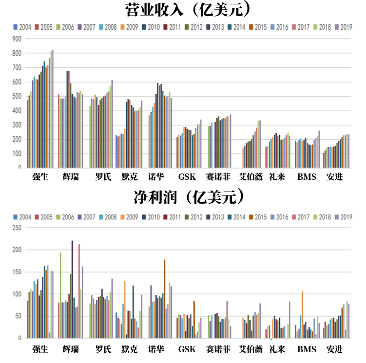 同时辉瑞、强生、罗氏等大药企在美国的市占率都已经到5%的较高水平,所以近些年许多大药企的收入和净利润增速整体处于个位数的较低水平。