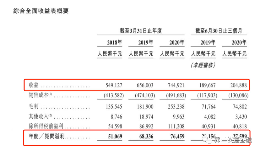 财务数据显示,2017财年至2019财年公司总营收分别为人民币5.49亿元、6.56亿元和7.45亿元,复合年增长率为16.5%;同期净利润5106.9万元、6833.6万元及7645.9万元,复合年增长率为22.4%。