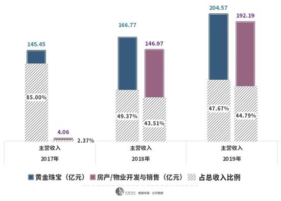2013年后,豫园股份主营的珠宝业务营收呈现下滑趋势,从2013年的营收破200亿元,连年下滑至2016年约156亿元。