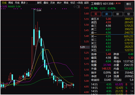 在市场表现整体相对强劲的同时,上证指数弱于大势,四大行股价表现疲弱,工商银行A股下跌0.40%,仍未彻底摆脱近期的连续阴跌之势。