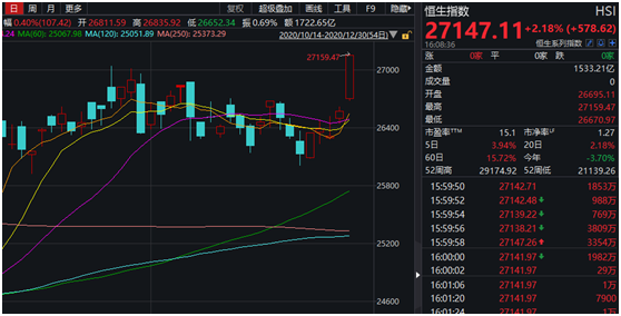 在A股市场大幅上涨的同时,港股市场也迎来大涨。