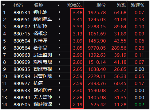 概念股方面,锂电池、新能源车等概念板块暴涨。银禧科技、孚能科技、宁德时代、动力源等多个相关概念股涨幅超过10%。