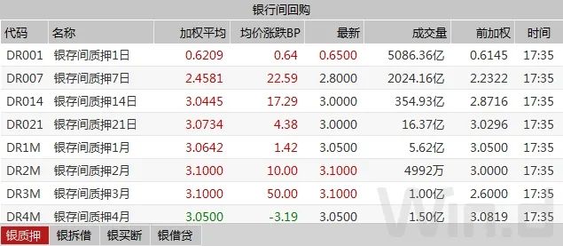 12月30日,全国银行间债券市场结算总量为24,035.93亿元,较上日下降28.99%,交易结算总笔数为13378笔。其中,质押式回购19,357.32亿元,买断式回购77.02亿元,现券交易4,513.30亿元,债券借贷88.30亿元。银行间债券市场回购利率以上行为主,其中,7天回购利率上行34.0bp至3.146%。