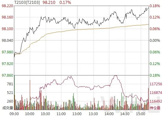 周三,国债期货尾盘拉升全线收涨,10年期主力合约涨0.17%,5年期主力合约涨0.16%,2年期主力合约涨0.06%。A股方面,两市股指震荡走升,上证综指收盘涨超1%,创业板指、深证成指收于五年高点,分别收涨3.11%、1.66%。交易员称,跨年之际流动性充裕,且消息面扰动因素不多,各机构买兴浓厚,抢先配置热情不减;此外央行货币政策委员会四季度例会释放偏暖信号,令市场看多心态持续强化,此前踏空的资金也按捺不住纷纷入场,现券收益率大幅下行;关注周四官方制造业PMI以及跨年后流动性走向。