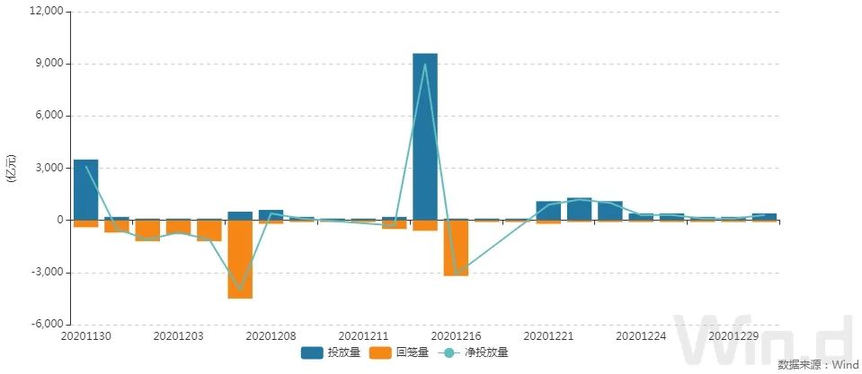 央行公告称,为维护年末流动性平稳,12月30日以利率招标方式开展了400亿元7天期逆回购操作,中标利率2.20%。Wind数据显示,当日有100亿元逆回购到期,净投放300亿元。