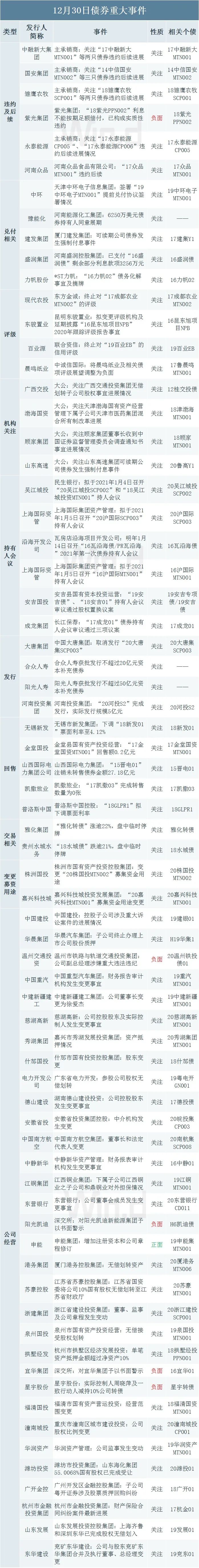从发债类型看,12月30日,债券市场共发行地方政府债9只,同业存单58只,企业债2只,公司债8只,中期票据1只,短期融资券2只,定向工具1只,资产支持证券10只,可交换债1只。
