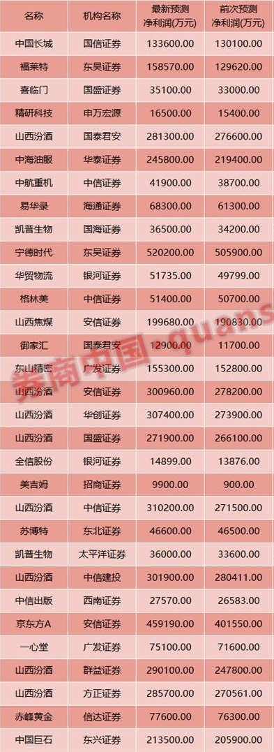 此外,凯普生物被国海证券和太平洋证券2家机构上调业绩预测,格林美、京东方A、精研科技、美吉姆、中航重机等多家上市公司被上调了业绩预测。最新被上调股价的宁德时代,也被东吴证券上调了业绩预测。