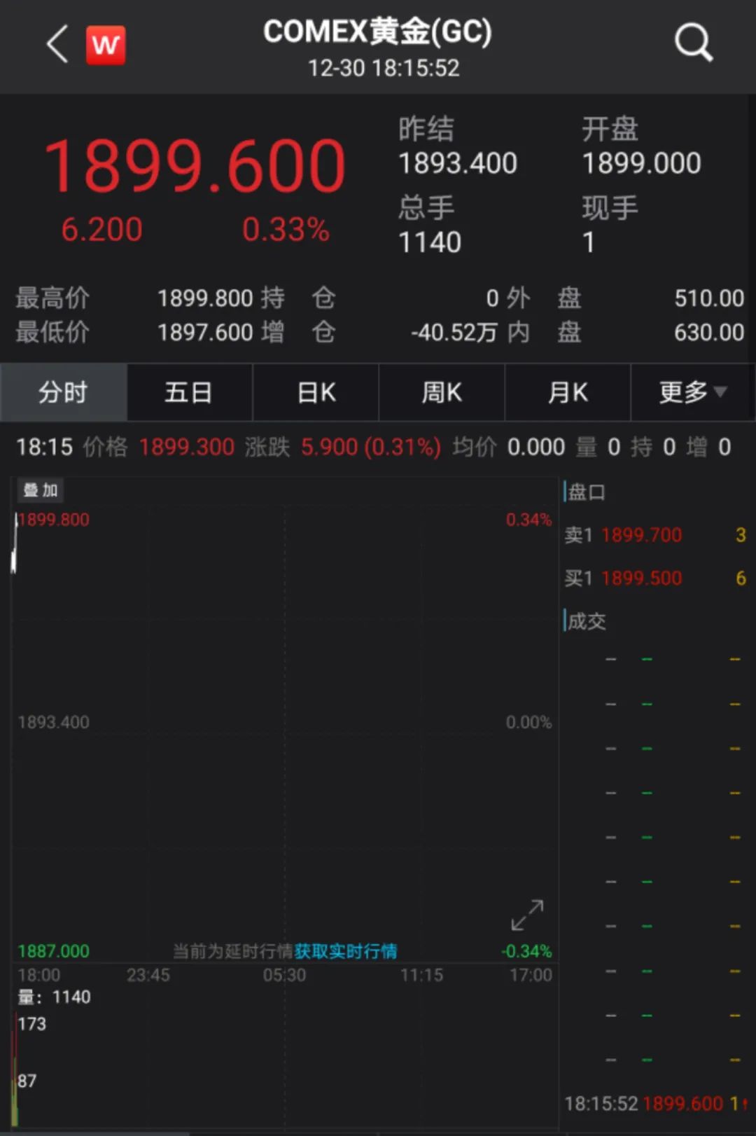 黄金期货价格上涨0.6%,报收于每盎司1893.40美元,因ICE美元指数再次大跌,击穿900这一对投资者心理来说十分重要的关口。