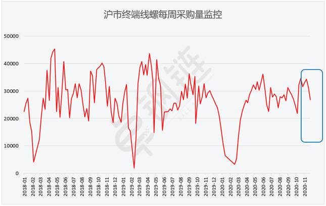 图3 2018年1月以来沪市终端线螺每周采购量监控变化情况