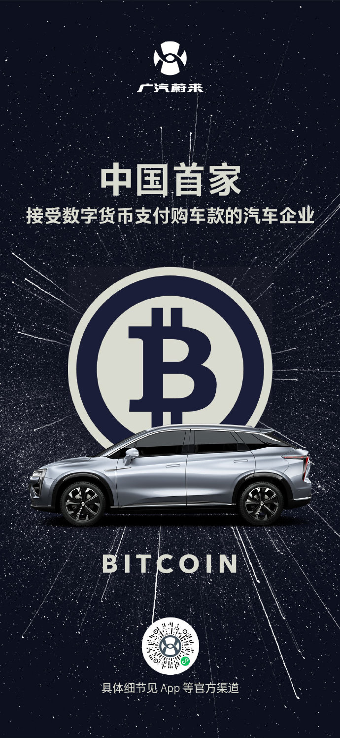 热点栏目12月31日,中国新兴电动汽车制造商广汽蔚来在官方微博上宣布成为中国首家接受“比特币”支付购车款的汽车企业。
