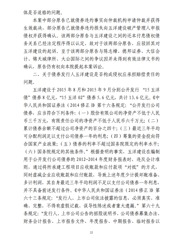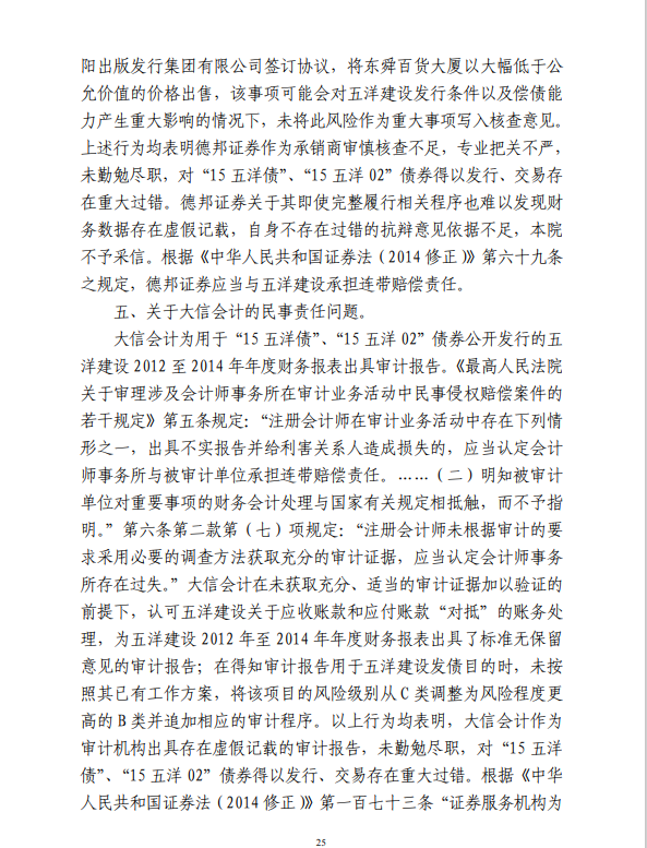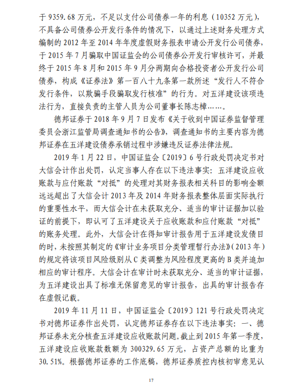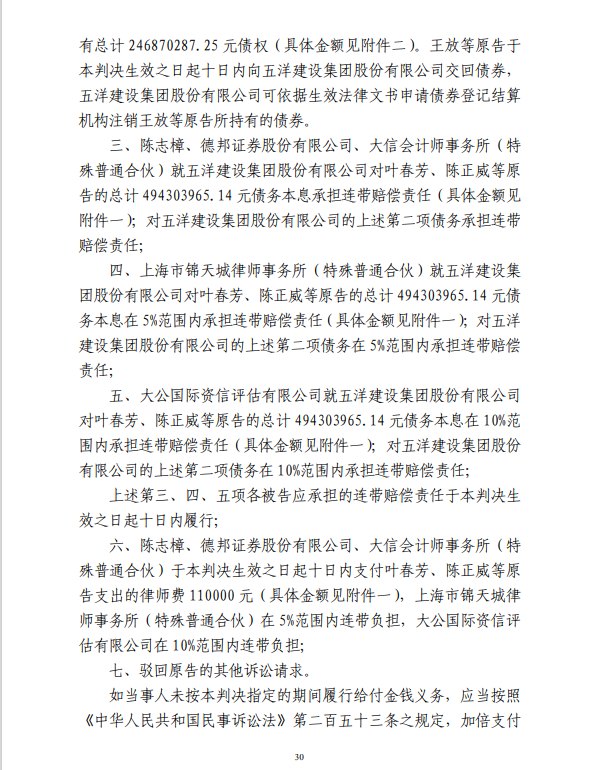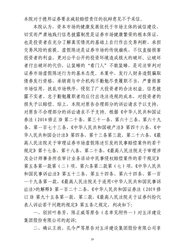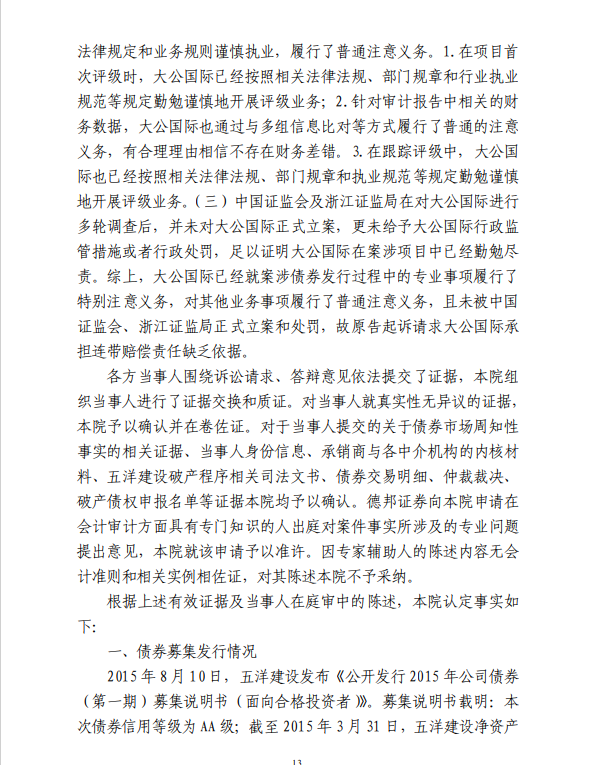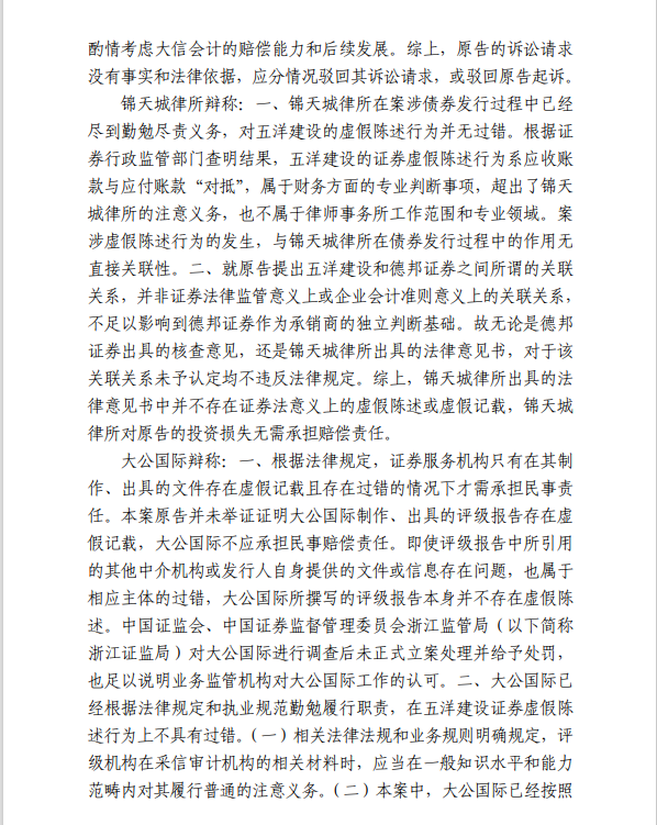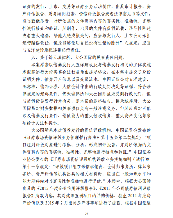 五洋案判决出炉:德邦证券、大公国际及律所会所均需承担连带责任