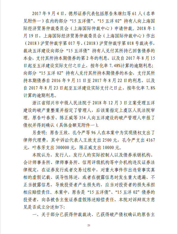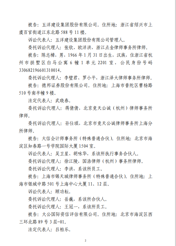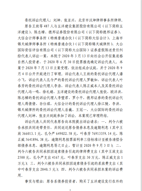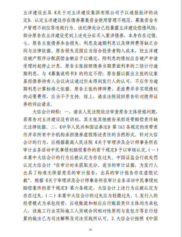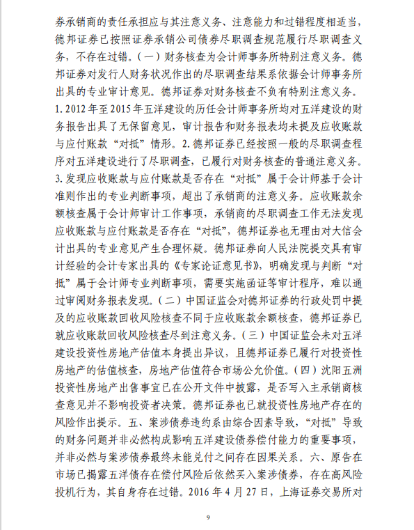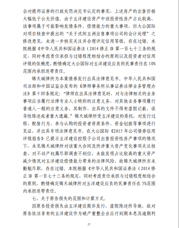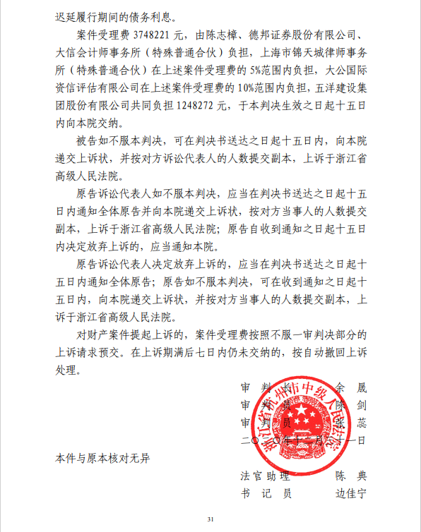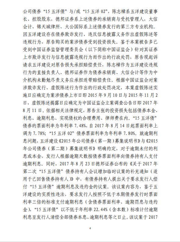 五洋案判决出炉:德邦证券、大公国际及律所会所均需承担连带责任