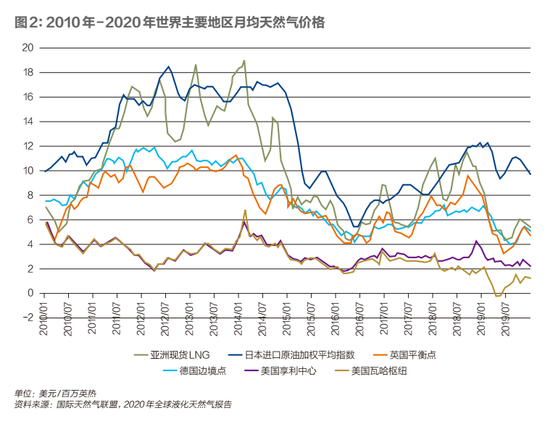 与此同时,由于新冠肺炎疫情导致的消费需求急剧减少,从2020年一季度开始,全球液化天然气生产设施负荷降至个数位,大量船货无人问津,国际天然气市场价格在十多年低位水平上再次下跌。