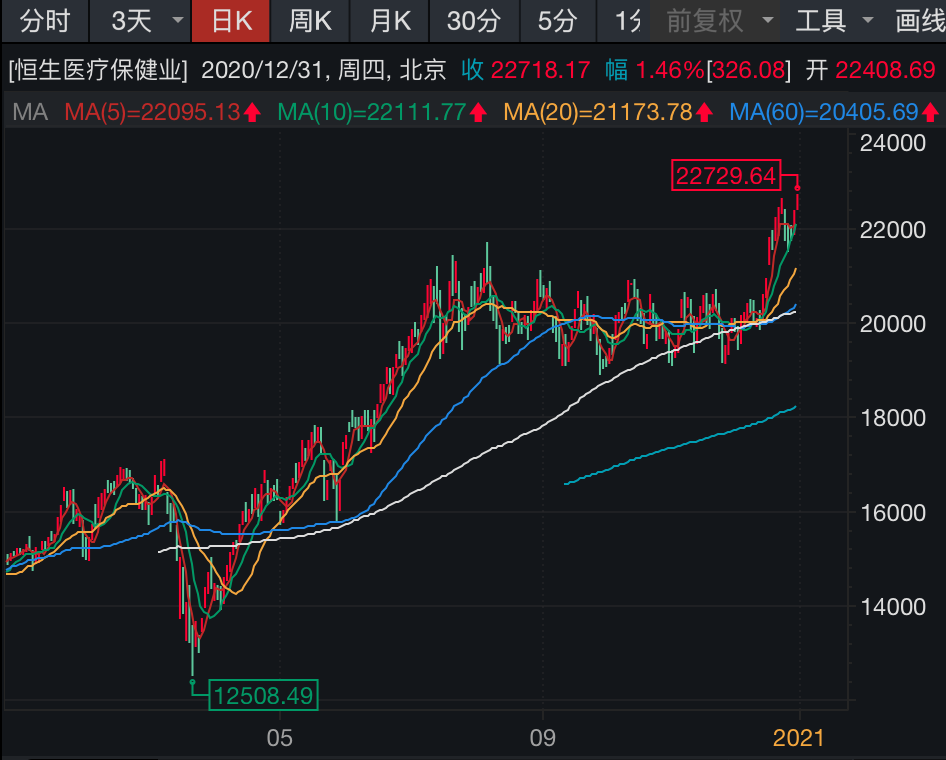 港股市场上,医疗保健板块2020年涨幅达49.48%,涨幅仅次于资讯科技板块。医疗保健板块内,微创医疗、康希诺生物、康龙化成、阿里健康、先健科技、信达生物2020年涨幅均超100%。
