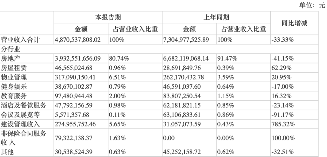 2020年中报显示,中天金融报告期内房地产营收为39.33亿元,占该公司总营收比例高达80.74%,其次是物业管理收入和建设管理收入,占总营收比例分别为6.51%和5.65%。虽然中天金融表示,报告期内实现金融类营业总收入约70.63亿元,同比增长29.08%,但其营收构成显示,非保险合同服务收入仅7932.21万元,占总营收比例约1.63%。