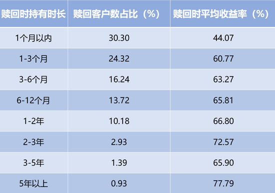 同样,中欧基金的投资者中,有一半以上会在买入基金后的3个月内赎回,7成会在6个月内赎回。