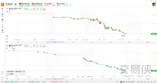 新浪报价显示,离岸人民币兑美元一度升破6.45关口,日内涨超450点。中国外汇交易中心报价显示,在岸人民币兑美元站上6.50关口后持续走高,现升至2018年6月高位的6.4733,较上一交易日官方收盘价涨超660点。