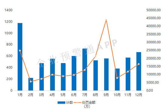 纵览2020年各月处罚,年初与年中的金额处罚力度较强,体现监管周期排查结果。在处罚事件上,各季度处罚总体维持相似水平。