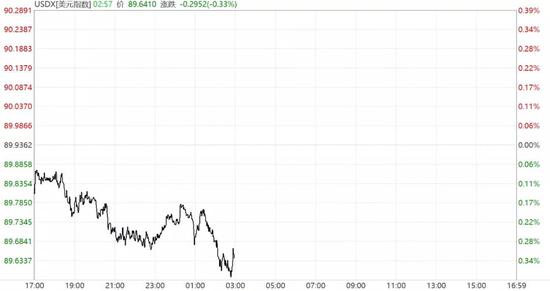 与此同时,美元走弱,美元指数最低跌至89.58。