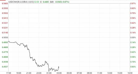 离岸人民币对美元汇率则在盘中率先突破6.45关口,截至15:50,最高涨至6.4417元,较前收盘价涨633点。